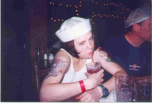 An early photo, with Dave Fillmore at right, from the rained out U.S.S. North Carolina swing dance in Wilmington, circa 2001/2002. Sharpie tattoos courtesy of my neighbors, Cape Fear Tattoo.
