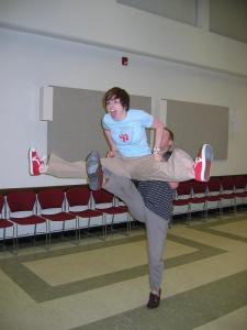 The ever resourceful Caroline had the idea that we would host our own swing dance at our high school. After a little digging, we discovered that we could use the gym after a football game for about an hour and that the high school band director did ballroom dancing with his wife and would be willing to teach an East Coast Swing lesson. We befriended the A/V guys who put together mini-commercials for the dance that aired during morning announcements, using dance clips from A League of Their Own and Swingers. I put together a set of my swing music (my first DJ gig!) and with a boom box we were set. Caroline and I donned our GAP khakis, took the basic lesson, did dangerous aerials with our friends, and left with a feeling of accomplishment – we learned how to swing dance!